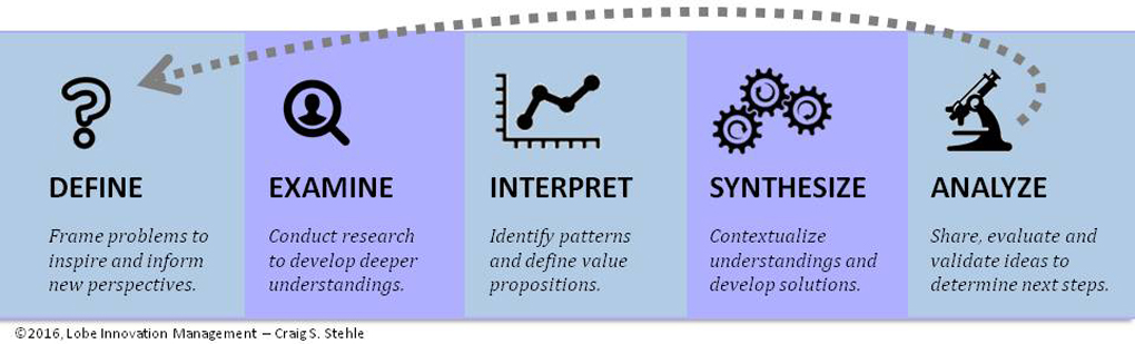 Our process employs Integrative Thinking as a structured, creative approach to frame problems, investigate ideas, and analyze and validate understandings to inspire the creation of new and unique solutions.